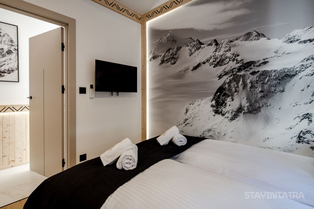 Sypialnia: łóżko małżeńskie, szafka nocna, telewizor, szafa, klimatyzacja